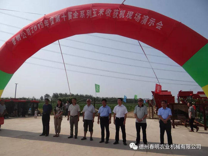 2019年7月19日,德州春明农业机械有限公司在素有“历史名城,运河明珠,弦歌古郡,状元之乡”之美誉的武城——春明公司试验田召开了2019年度第十届全系列玉米收获机现场推介会,来自全国主销省份的300多名经销商及用户朋友莅临现场参加了本次盛会。会议开幕式由德州春明农业机械有限公司销售副总周天鹏主持,出席嘉宾有中国农业机械化研究院呼和浩特分院**院长、吉林省农业机械试验鉴定站李立站长、山东理工大学刁培松院长、内蒙古华德牧草机械有限责任公司白江总经理、德州市农业农村事业发展中心农业机械技术推广站唐站长,武城县农业农村局赵局长、武城县武城镇党委书记王书记、德州春明农业机械有限公司霍德义总经理等。上午时分,在相关领导和春明公司霍德义总经理一段精彩的讲话之后,推介会正式拉开帷幕。